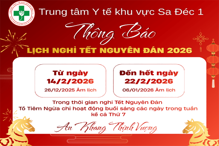 THÔNG BÁO LỊCH NGHỈ TẾT NGUYÊN ĐÁN 2026 CỦA TRUNG TÂM Y TẾ KHU VỰC SA ĐÉC 1